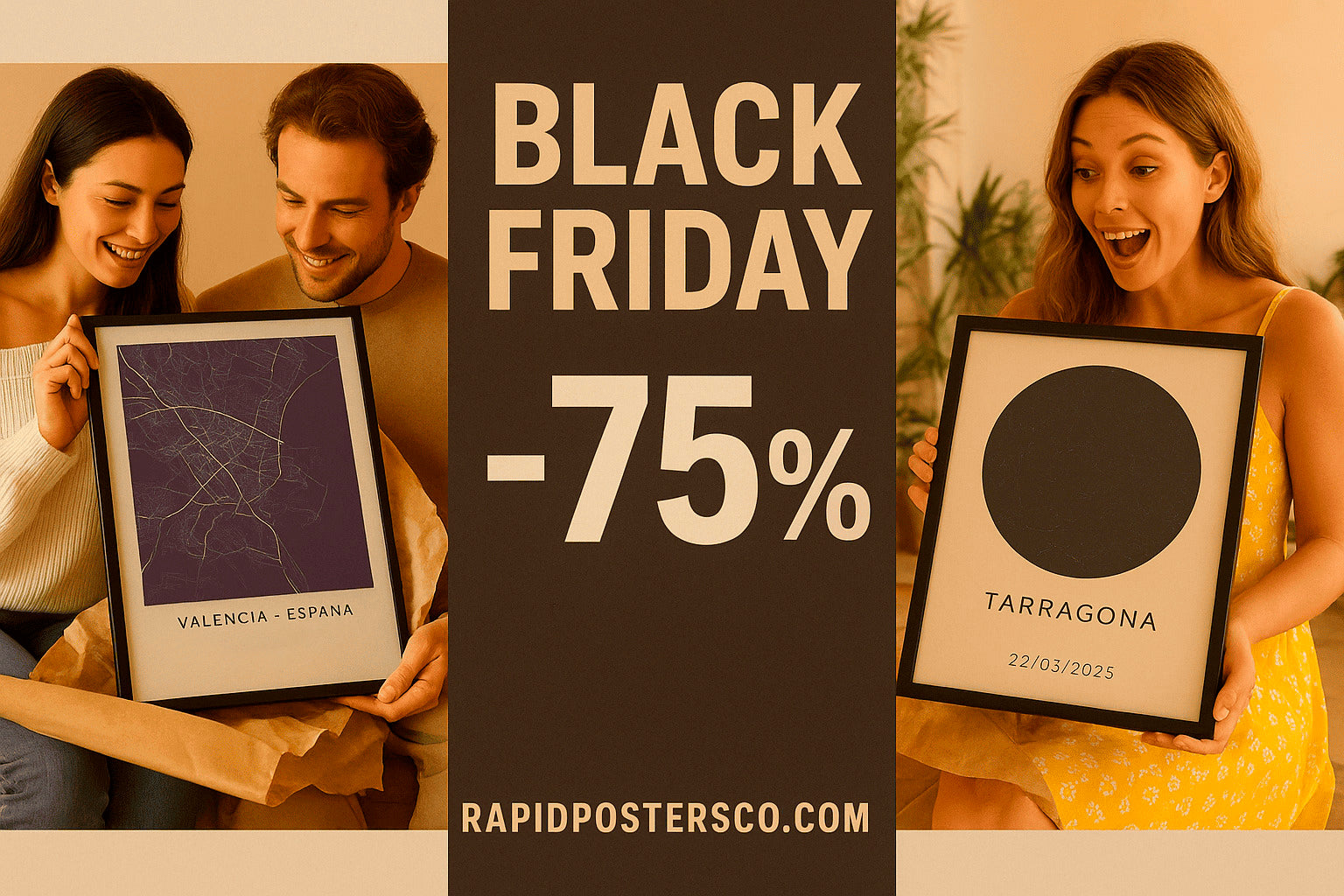 Con la oferta de Black Friday llévate tu póster favorito (o todos los que quieras) con un descuento del -75% extra que se aplicará automáticamente al personalizar tu póster.